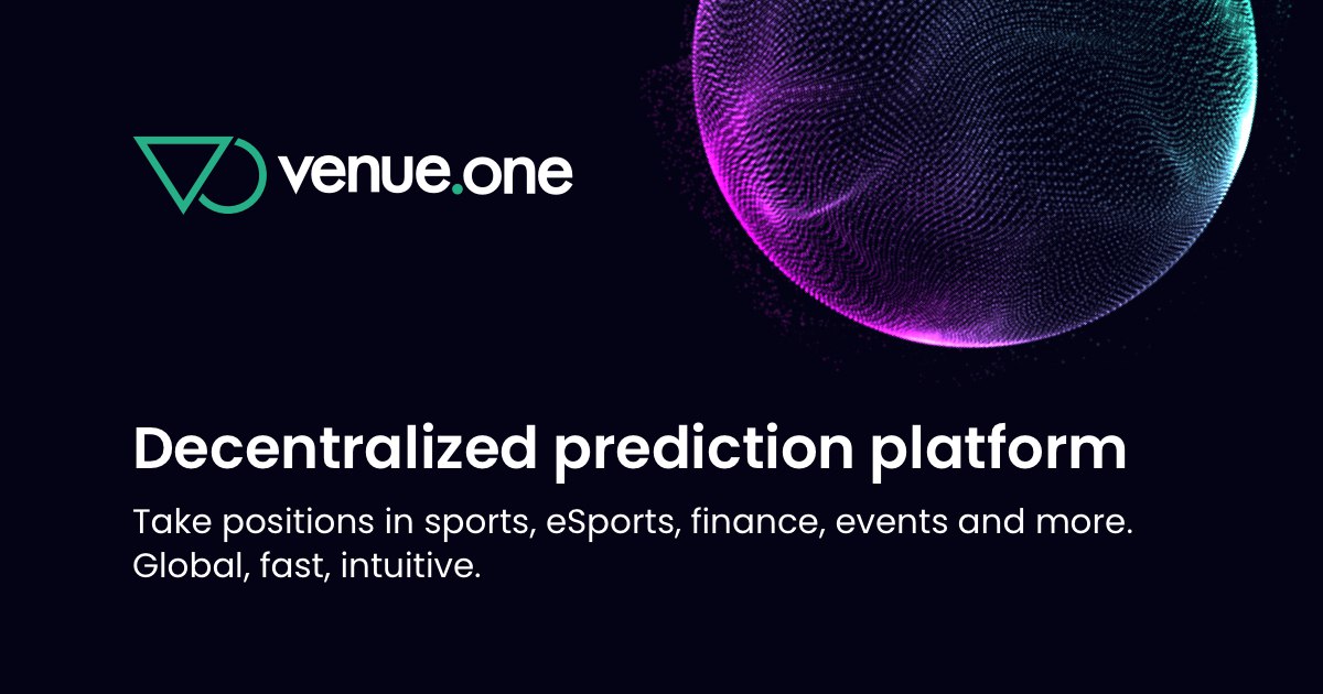 Venue One - это протокол децентрализованного прогнозирования для игроков и стримеров, поставщик ликвидности со своими наградами и своим маркетом, построенный на Algorand.