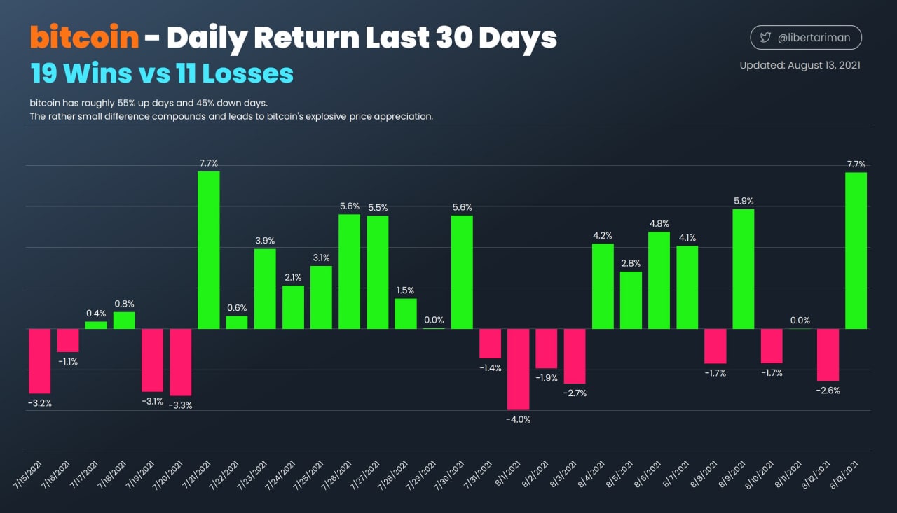 💠В пятницу, 13 августа, котировки первой криптовалюты превысили уровень $47 800 впервые после майского падения.