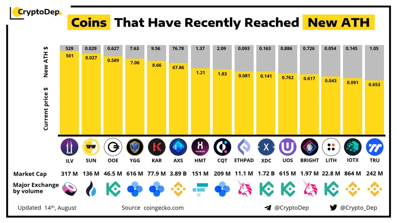 🌟Монеты проектов, которые недавно достигли своих новых пиков (ATH)