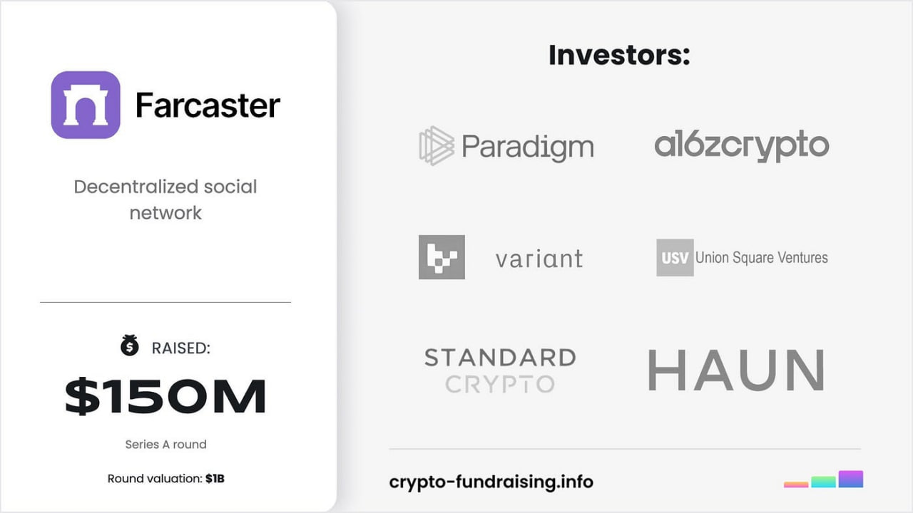 Farcaster — это протокол для создания децентрализованных социальных сетей. В данный проект занесли $180млн такие фонды как: a16z, Coinbase Ventures, Multicoin Capital и другие фонды, все таки слухи о жирном раунде подтвердились