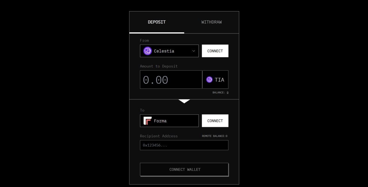 Сейчас на Celestia и Astria ($5.5M) запустился первый "sovereign" чейн Forma. И сразу появился мост, который сделан на Hyperlane, который мы можем попробовать, чтобы сделать доп. активность под их Airdrop
