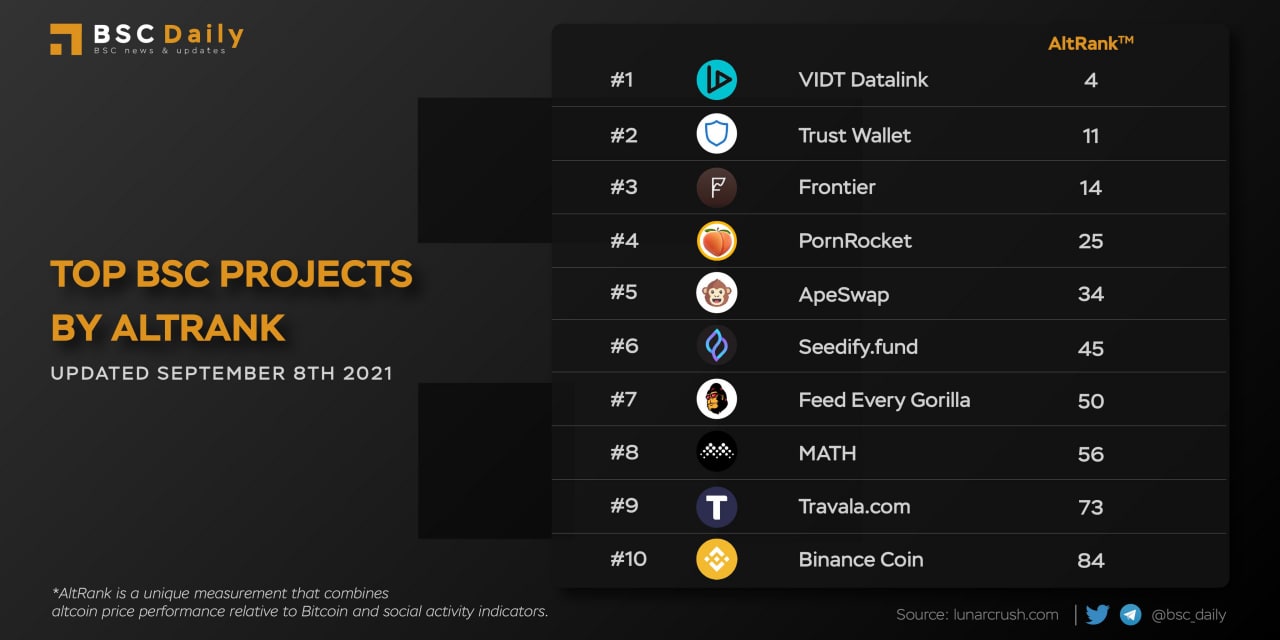 🌟Топ проектов в сети BSC по рангу альткоинов (AltRank)