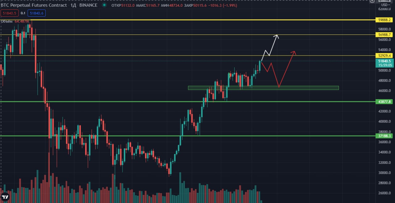🌟BTC закрытие недельной свечи выше $51 500, идем к $60 000?