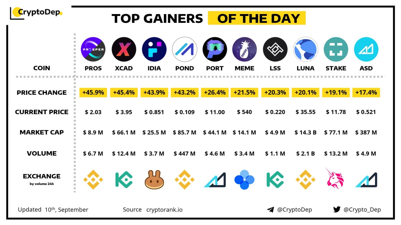 🌟Топ проектов по росту за вчерашний день, IDIA - топ 3