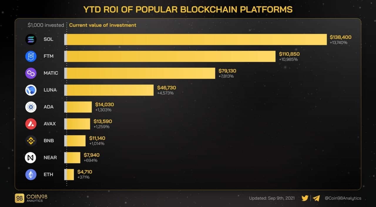 🌟Сколько могли вам принести инвестиции $1000 в один из основных блокчейнов за 9 месяцев?
