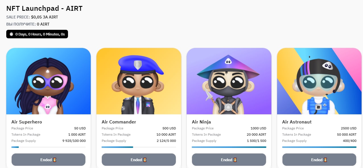 ⚡️AirNFT - сегодня ночью, в 00:00 заканчивается лаунчпад (пресейл токена проекта $AIRT).