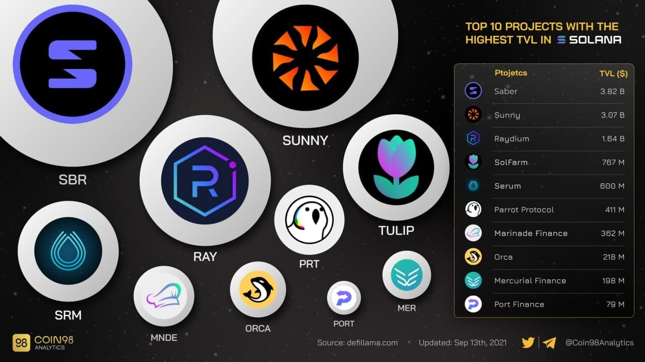 🌟Экосистема Solana, топ 10 проектов по $TVL (Общий объем внесенный средств)