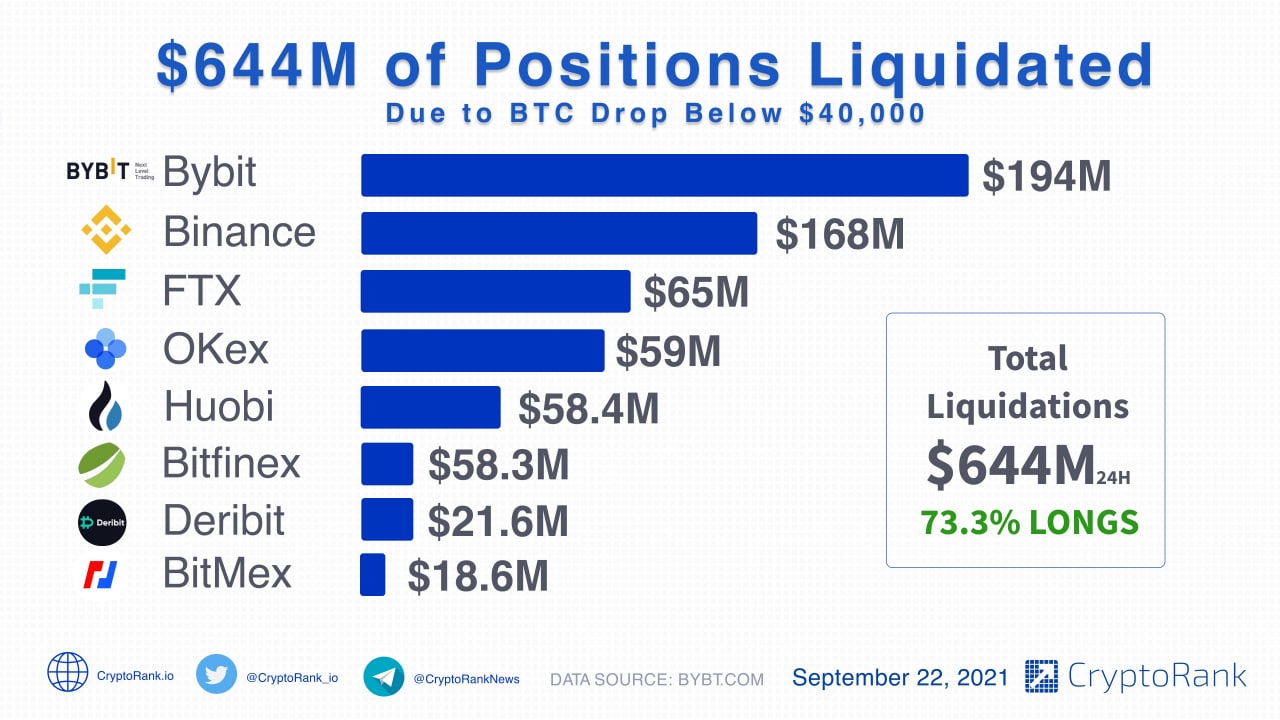 📣По итогам сегодняшнего дайва ниже $40 000 было ликвидировано $644 млн позиций