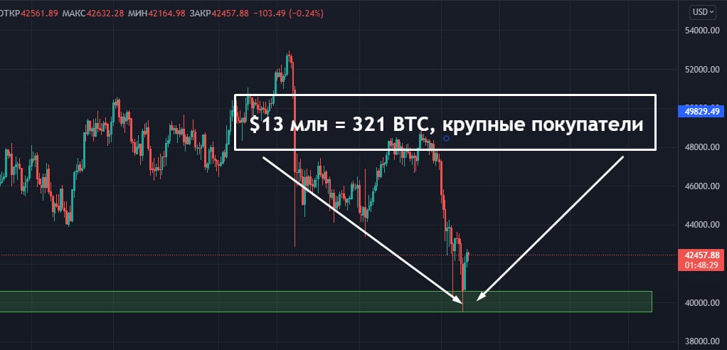 📍Очередное подтверждение того, что на локальной поддержке в районе $40 000 по BTC стоят крупные покупатели, которые не дают провалиться ниже.