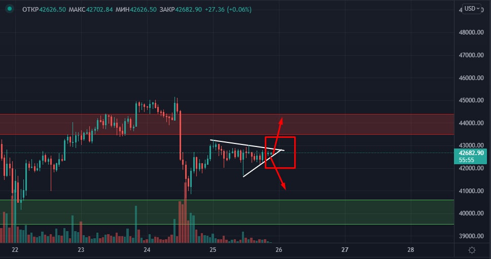 🔅Конечно при этом вариант победы продавцов и возврат в район $42 000 возможен, но не так вероятен и актуален.