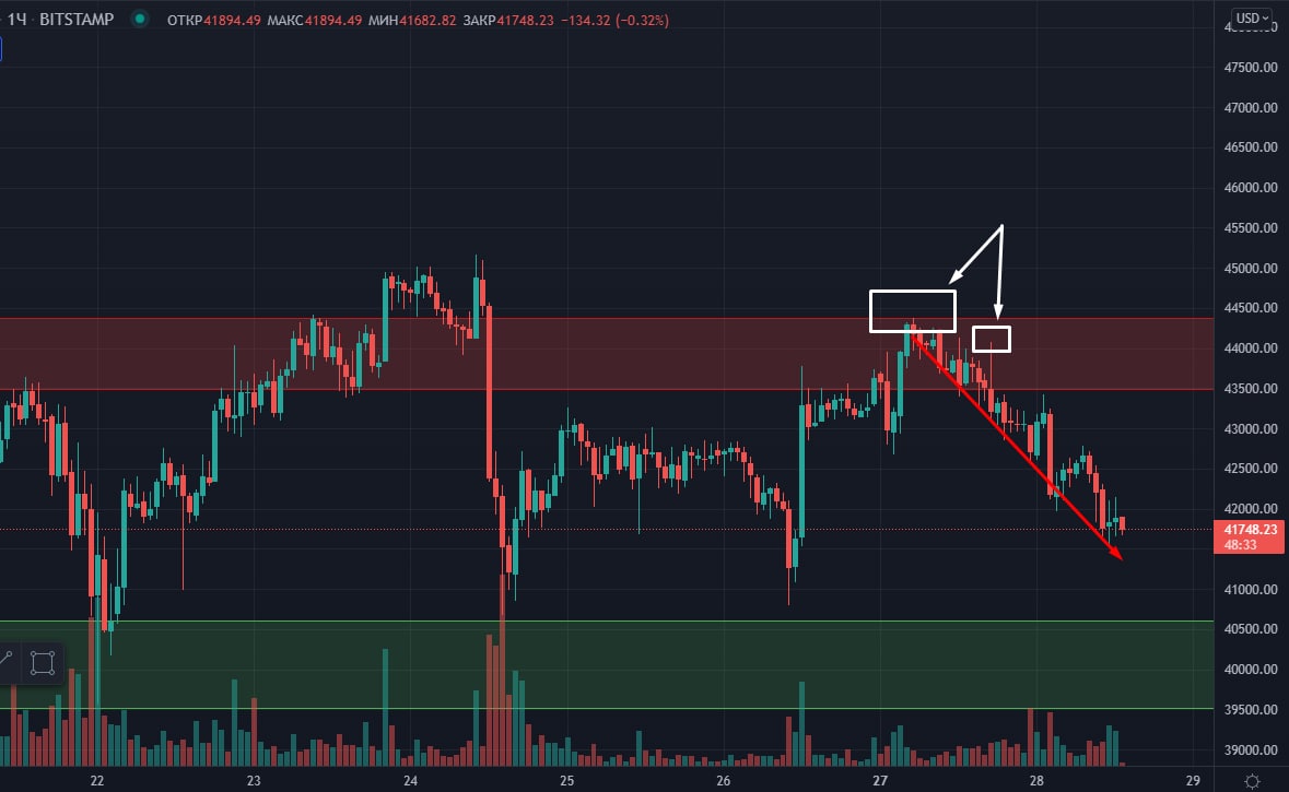 📣BTC, опять к поддержке в район $40 000