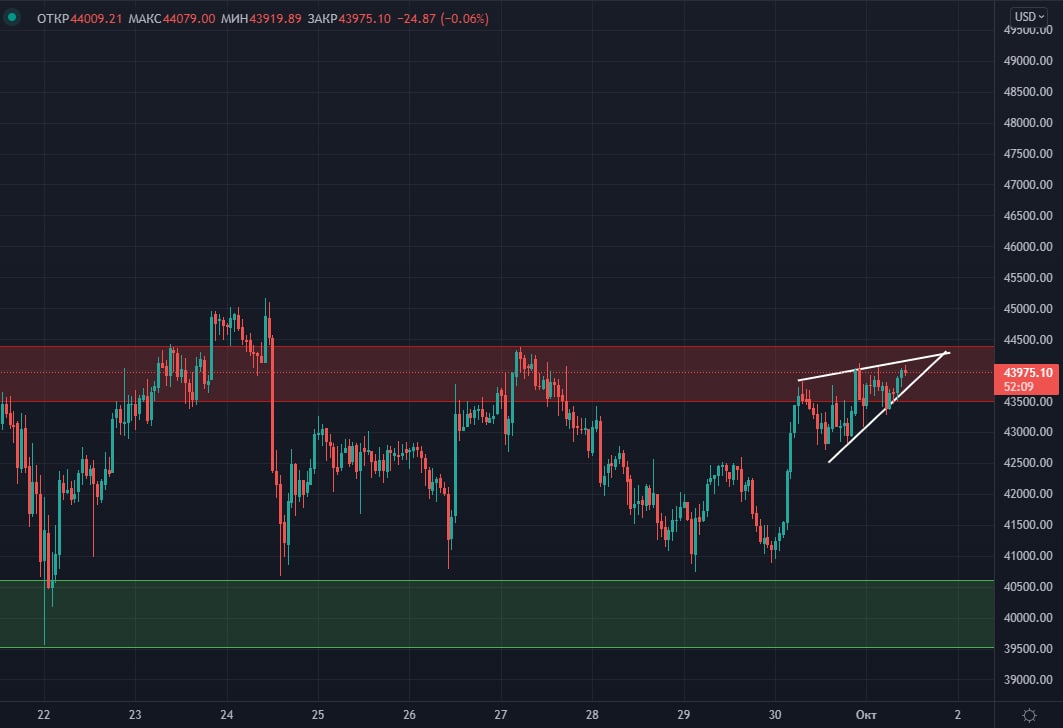С 20 сентября и до конца месяца мы стояли в боковике, между зоной сопротивления и мощным уровнем поддержки, который более 5 раз показал отличный откуп и нежелание крупных инвесторов спускаться ниже - они набрали свои позиции и готовы нести все наверх.