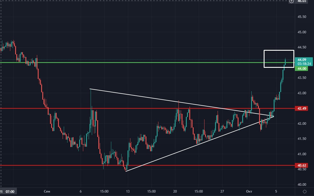 Вышли из длительного боковика по доминации BTC и пробили отметку 44.