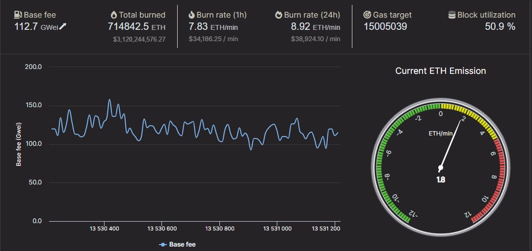 714 739 ETH — столько эфириума было сожжено сначала работы механизма сжигания токена. Согласно Etherchain, Ethereum сжигал 8,91 ETH на сумму $38 679 каждую минуту за последние 24 часа.