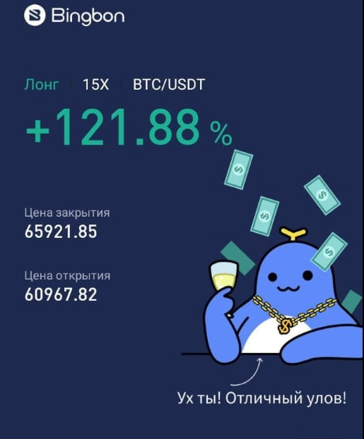 И в качестве примера: одна из самых успешных сделок с копитрейдинга (х15 плечо не одобряю, сам использую максимум 10х)