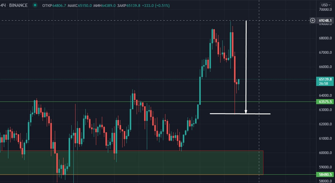 🌟Вчера BTC обновил свой ATH на $69200 и слился до $63 000