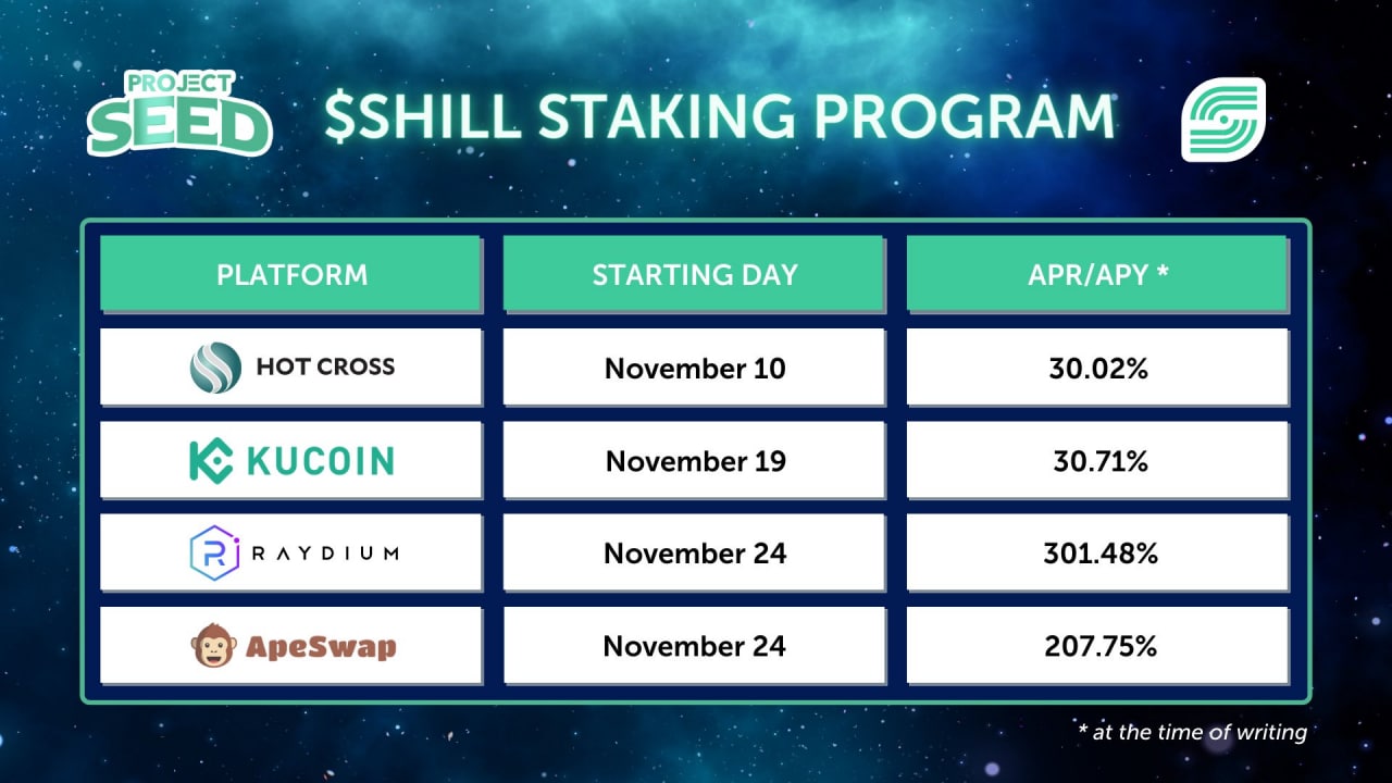 Для холдеров $SHILL - не оставляйте ваши монеты просто лежать на кошельке, есть 4 варианта, куда их закинуть под APR, в сетях BSC и SOL.