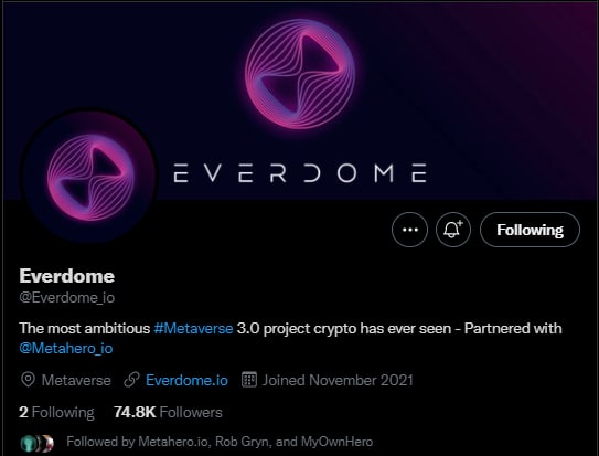 • Кто успел залететь - красавцы, теперь ждем масштабирования маркетинговой компании Metahero и Everdome (за 2 недели на аккаунт Everdome в твиттер подписалось 75к человек, реальный актив, не накрученный, при этом причин продавать токен $HERO у холдеров вообще нет, сами правила холда мотивируют держать токены у себя до самого IDO, т.е как минимум еще 1.5-2 месяца)