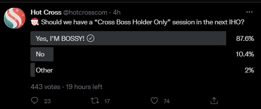 🧐Хоткросс выкатил свою идею об участии в IHO только за счет стейка Hot Bosses в отдельном пуле, рофл это или нет узнаем позже, но пока большинство ЗА.