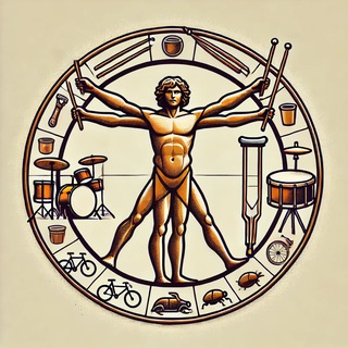 Эти картинки сгенерированы ChatGPT по запросу "I'm drummer and programmer, I need a logo for my personal brand. I see it as a Vitruvian man with drumsticks in his hands, and a drum kit in front of the man. On the edges there should be a crutch, a bicycle, a beetle, and a cup of coffee. Please make me such a logo".