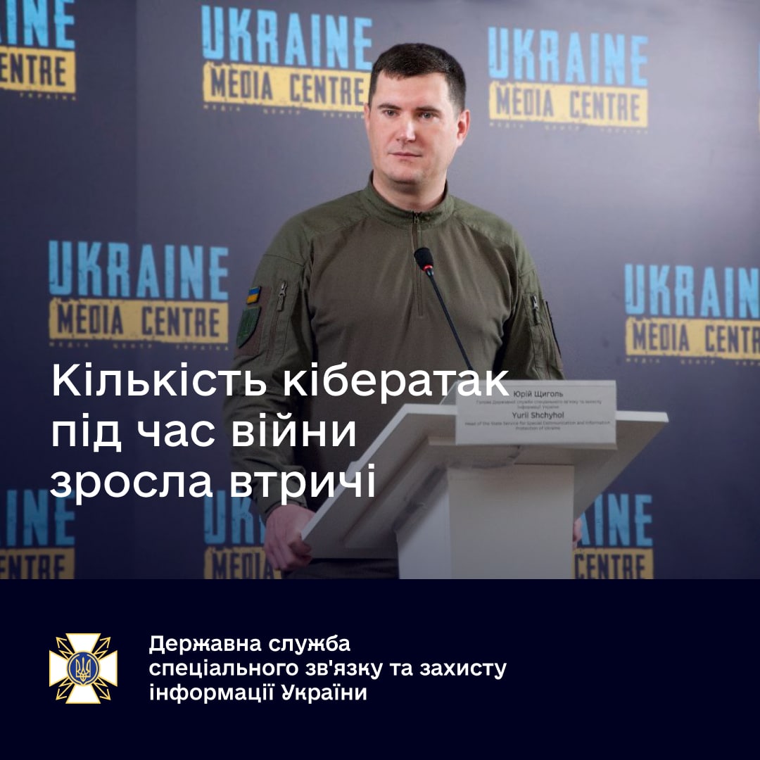 🔻Під час війни кількість ворожих кібератак зросла втричі порівняно з минулим роком. Найбільше атакують органи державної влади, медіаресурси, енергетичну сферу, сферу логістики. У кіберпросторі росіяни переслідують ті ж цілі, що і їхні військові – завдати якомога більше шкоди інфраструктурі, причому не стільки військовій, скільки цивільній. Про це сьогодні на брифінгу розповів голова Держспецзв'язку Юрій Щиголь.