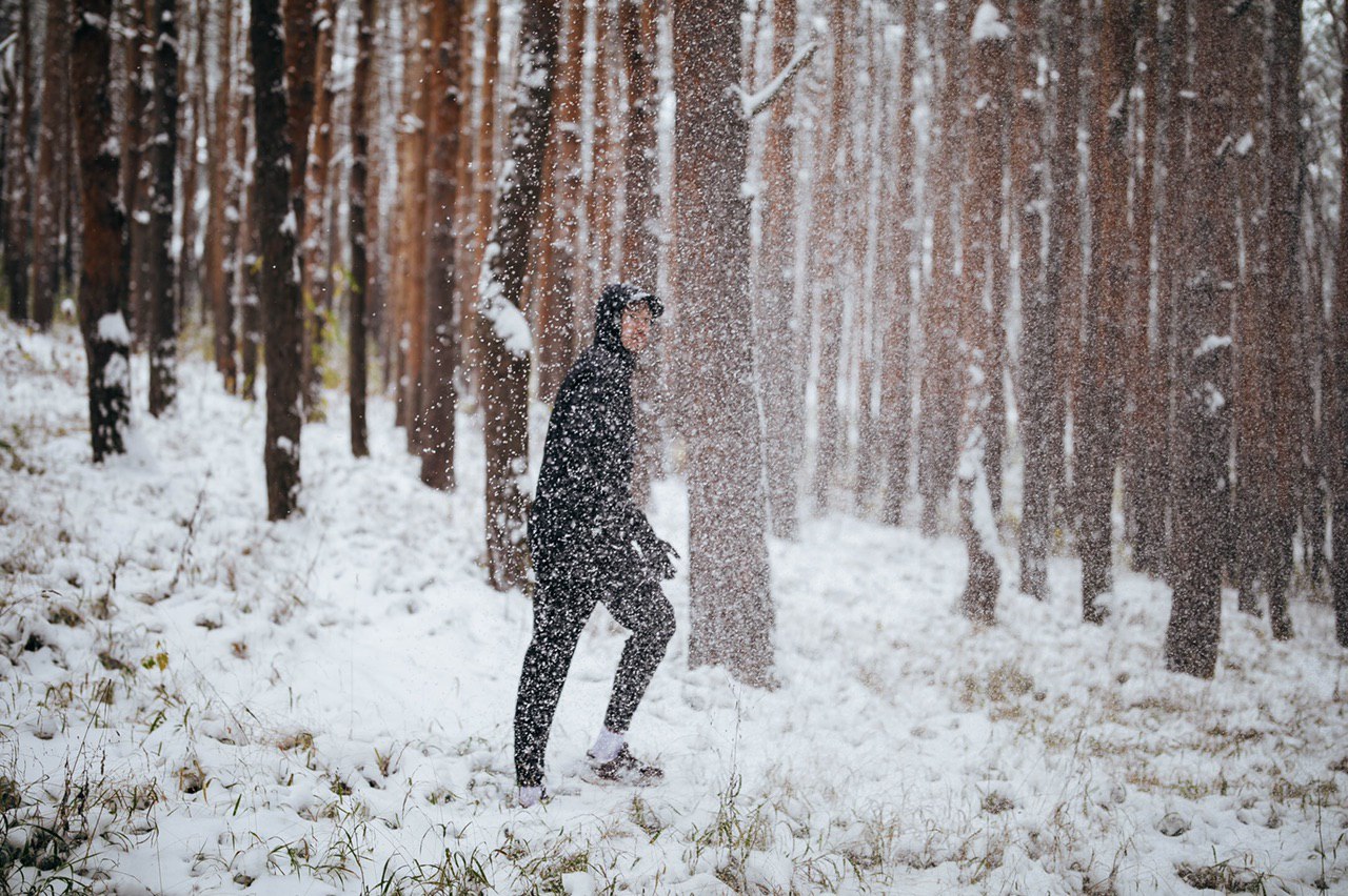 В среду погода не пощадила, насыпала с горкой и внесла свои коррективы. В том же пульсовом режиме(160уд.), что и в ПН-ВТ удалось отбежать 10км по 4:17... после мы немного поделали статику, походили выпадами в гору, сделали подскоки в гору и поускорялись.