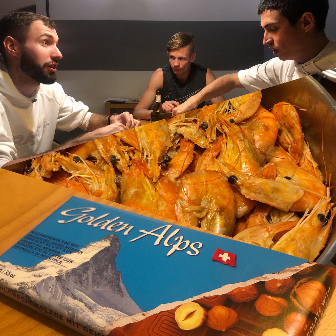 Теперь в нашем доме очень много макарон и изолята, арахиса и бананов, манго, конфет и яблок. А ещё скакалка и плитка швейцарского шоколада. Таким же татарстайер угощал нас и вечером. Приятно иметь знакомство со спортсменом, рассекающим по Европам. Хоть мы уже и не в Советском Союзе живем.