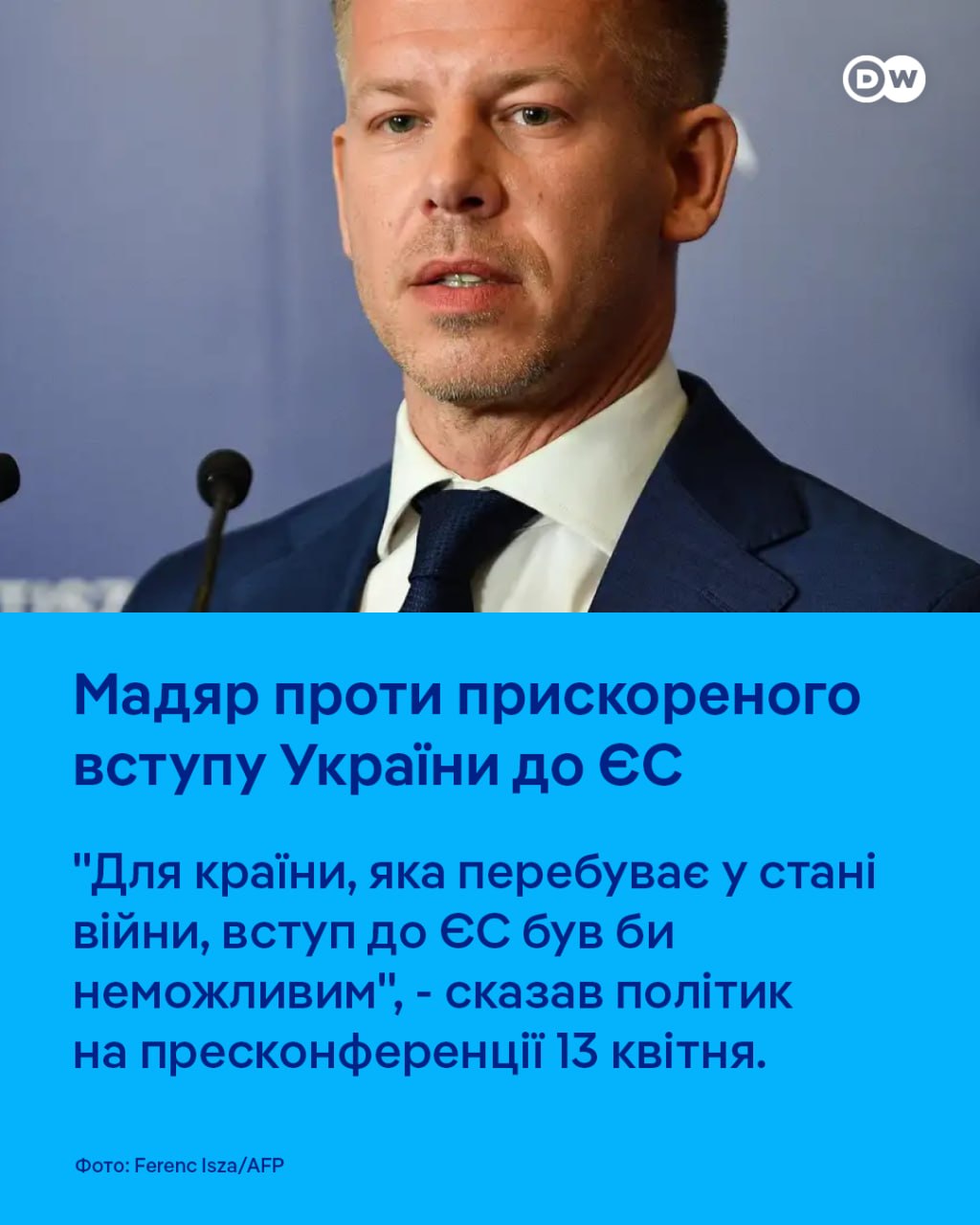 "Для країни, яка перебуває у стані війни, вступ до ЄС був би неможливим", - сказав він на пресконференції 13 квітня.
