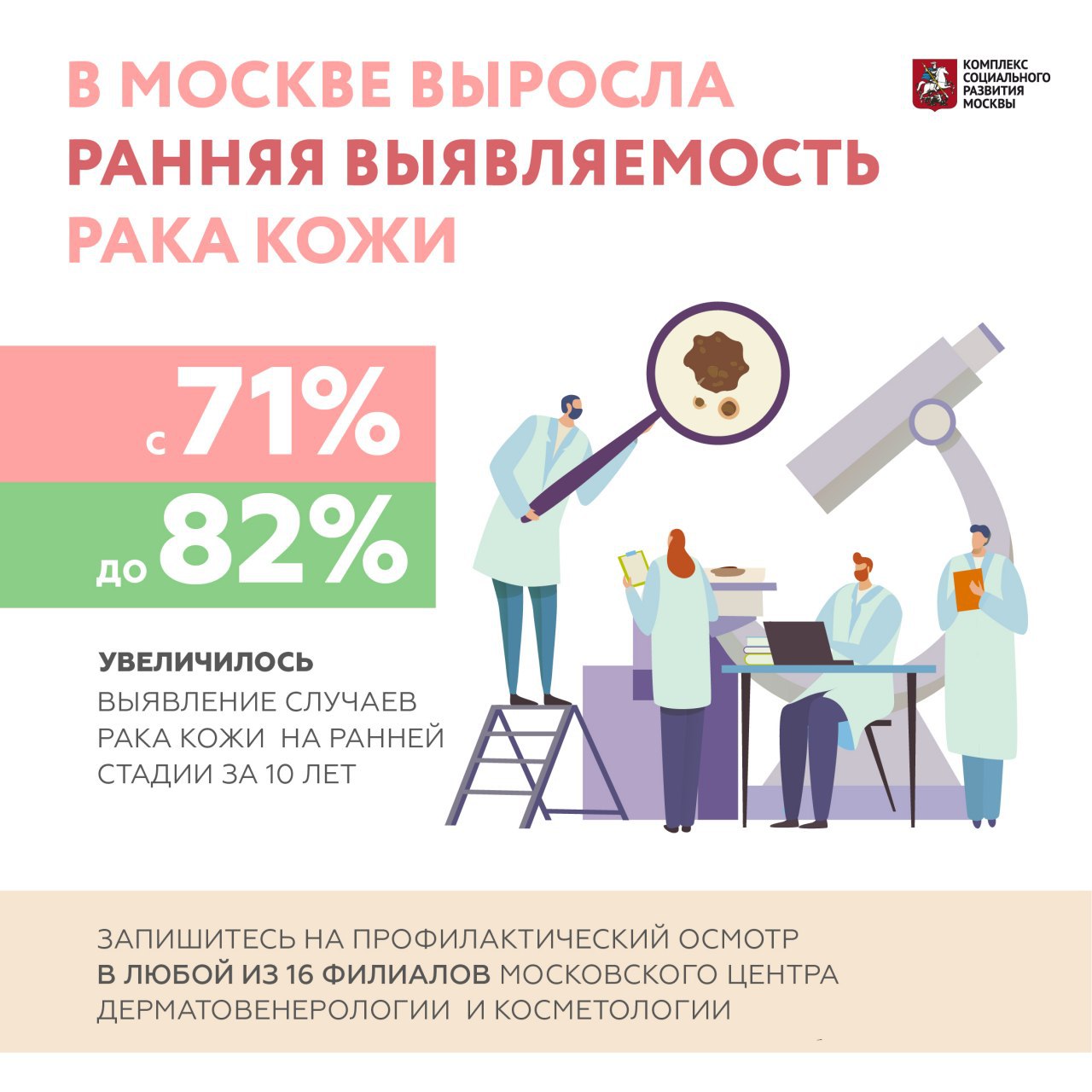 В Москве выявляемость рака кожи на ранней стадии выросла с 71% до 82% 🔬