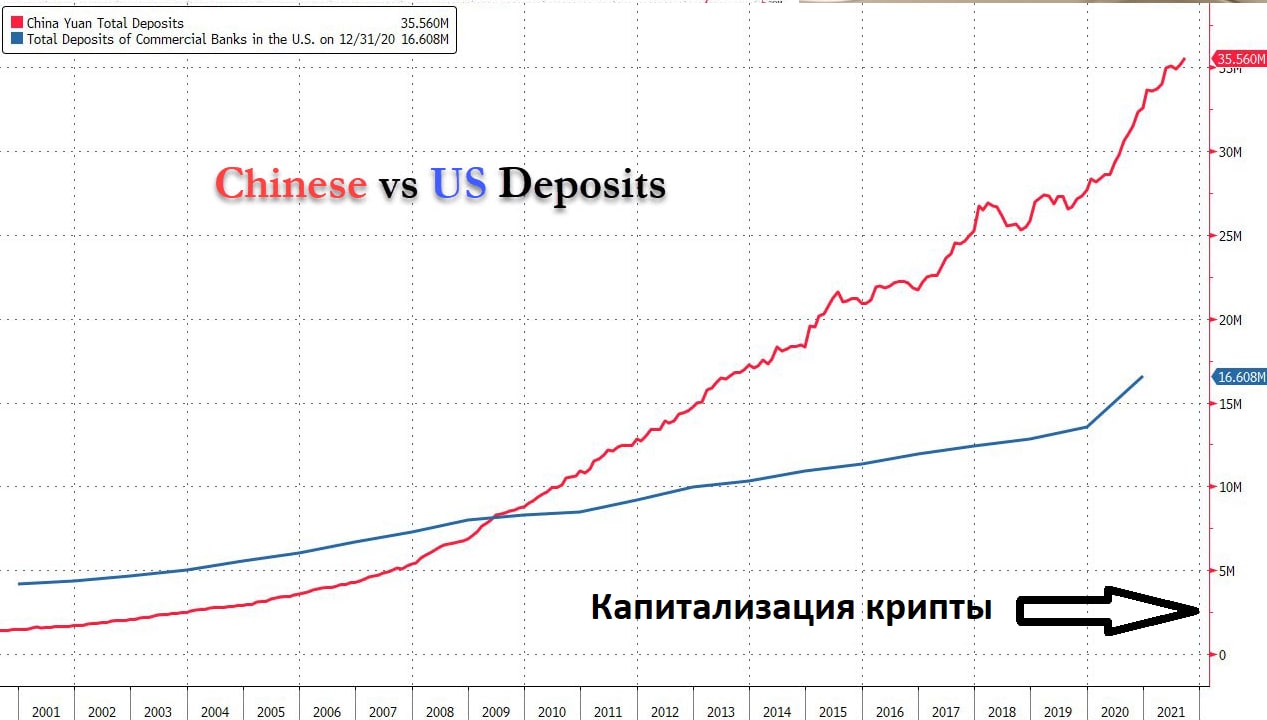 📊Средства на банковских депозитах в США и Китае в десятки раз превышают капитализацию всей крипты