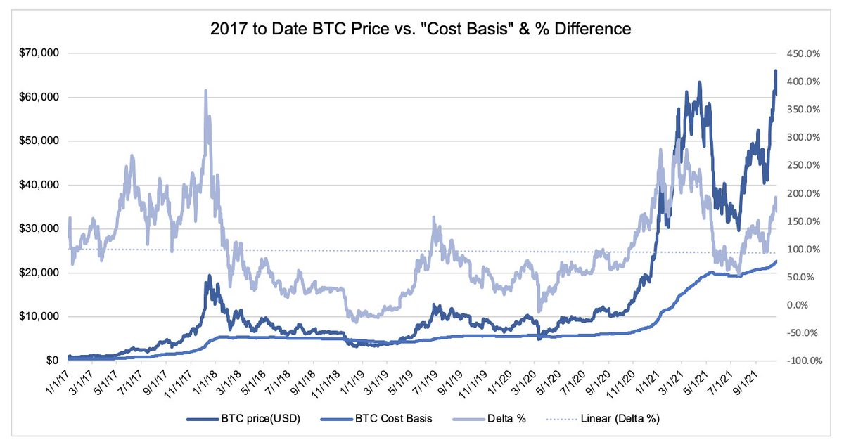 🦾Реализованная цена BTC достигла ATH в $22 650. Дельта от рыночной цены находится на локальном ATH в ~168%. Дельта в марте-мае 2021 года составила около 300%. На пике в конце 2017 года, дельта находилась выше 350%.