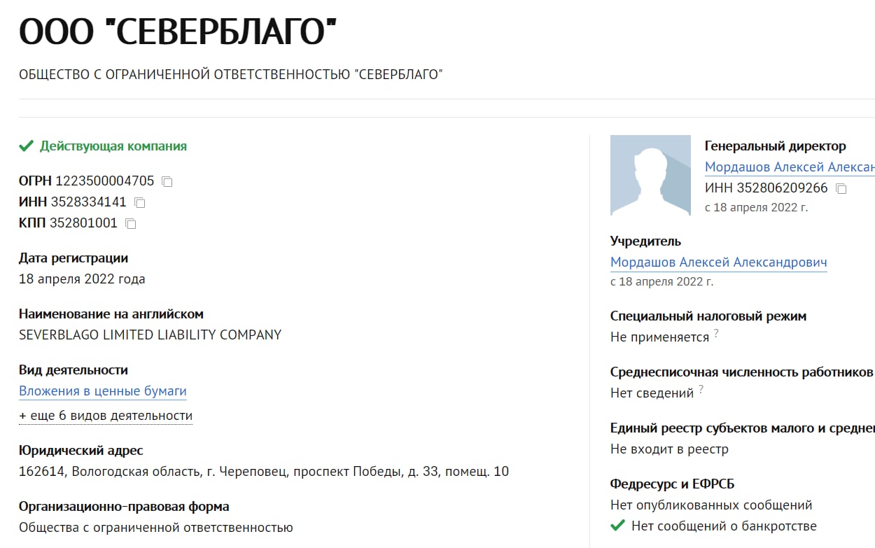 Как стало известно Мясорубке, вслед за другими богатыми семьями, владелец “Северстали” Алексей Мордашов переводит свои инвестиции и сервис по доверительному управлению в Россию. Для этого он зарегистрировал отдельное юрлицо “Северблаго”. где стал и генеральным директором. Основной вид деятельности - вложения в акции, уставные капиталы, венчурное инвестирование, доверительное управление.