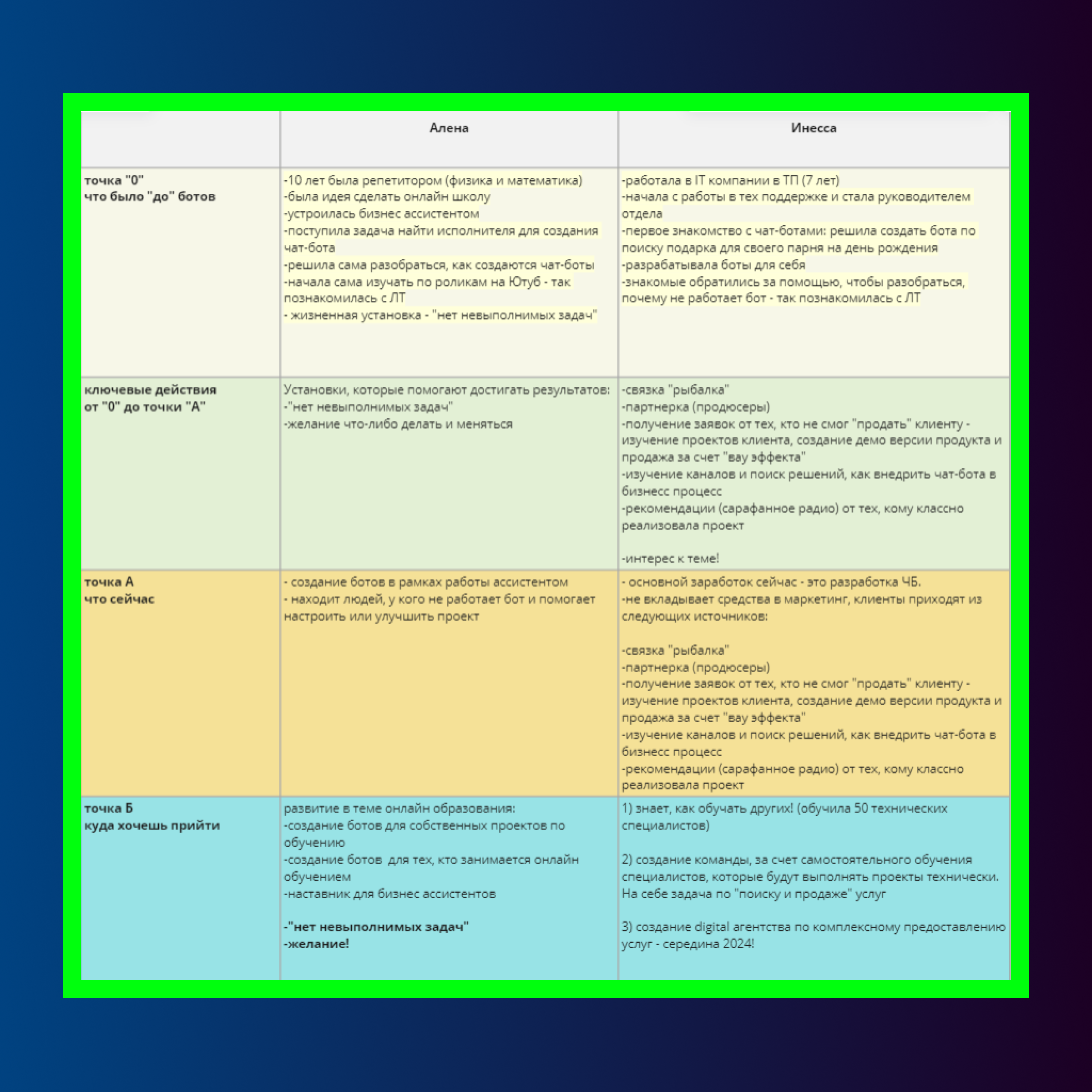 Поэтому совет на будущие эфиры: обязательно приходите в онлайн с ручной и блокнотом, чтобы не упустить ни одной полезной идеи. Ведь даже один инсайт, полученный на эфире, может в корне поменять вашу жизнь.