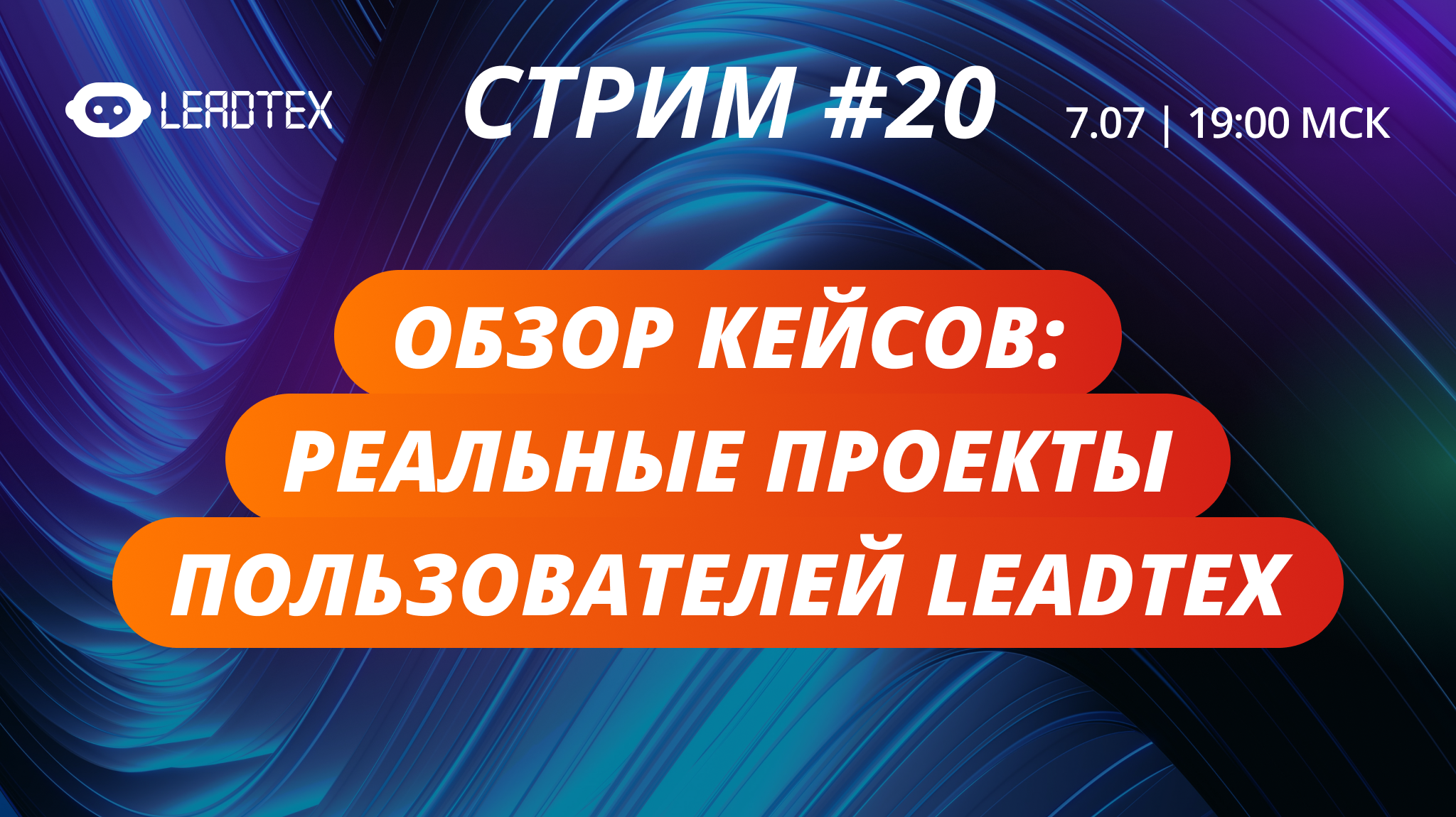 Завтра в 19:00 по МСК состоится стрим "Обзор кейсов: реальные проекты пользователей Leadtex", где мы объявим победителя конкурса на лучший проект и расскажем мега-полезную информацию об обучении в Академии LeadTex.