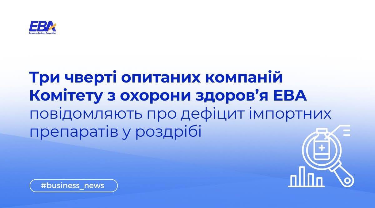 📊 76% опитаних компаній повідомляють про дефіцит імпортних препаратів у роздрібній мережі — результати опитування серед компаній Комітету з охорони здоров’я Європейської Бізнес Асоціації.