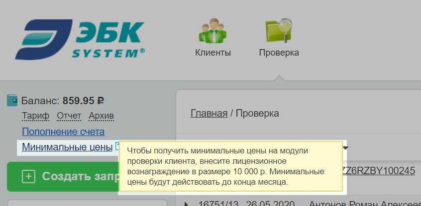 Чтобы поддержать вас в период самоизоляции, в апреле и мае мы предоставляли всем клиентам минимальные цены на проверки. С июня большая часть пользователей ЭБК system вышла на докризисный уровень по объемам поставки лидов и проверок, поэтому мы возвращаем стандартные условия получения минимальных цен на проверки.