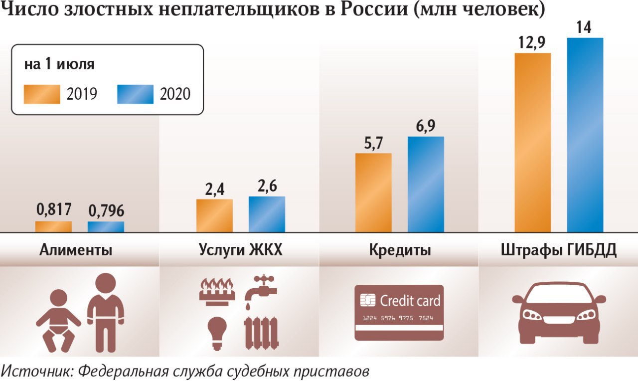 Россияне задолжали по кредитам, алиментам, штрафам ГИБДД и услугам ЖКХ. По сравнению с 2019 годом, количество невыездных возросло на 10%.