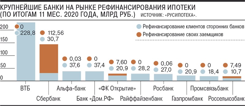 Спрос на рефинансирование ипотеки в России сохранится, но уже не будет таким агрессивным, как в ушедшем году, считают в ВТБ. В 2020 году были рефинансированы 234 тысячи ипотечных кредитов на общую сумму около 600 миллиардов рублей.