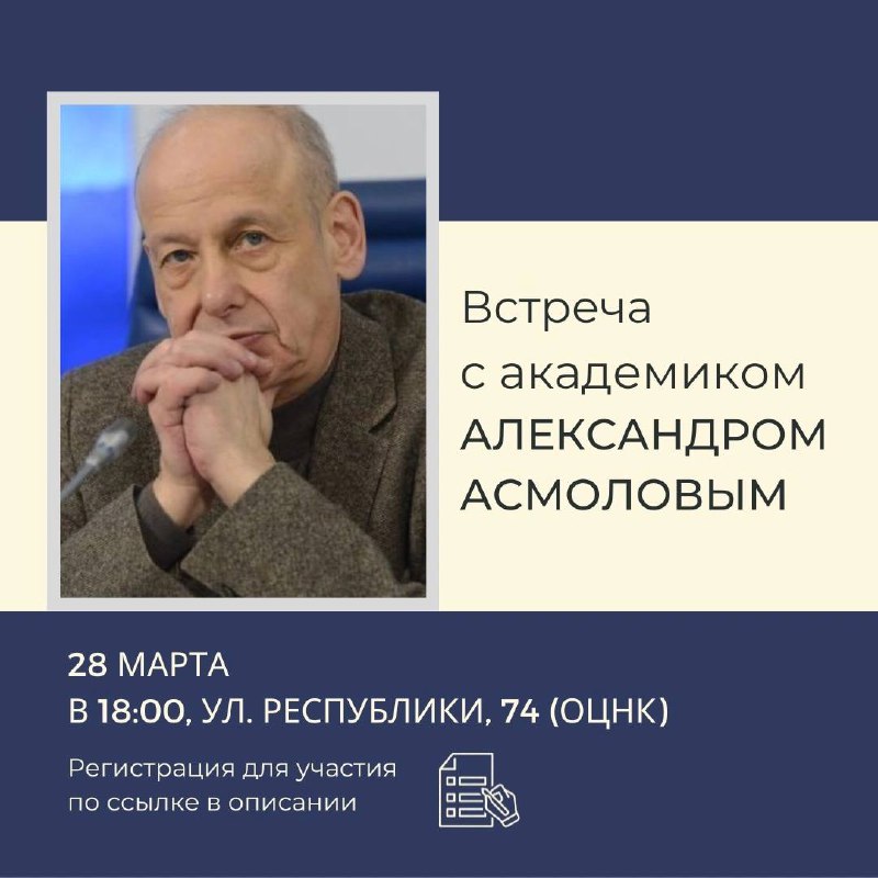 28 марта у каждого из вас будет уникальная возможность обсудить вопросы обучения и воспитания детей с академиком Российской академии образования, доктором психологических наук, профессором, заведующим кафедрой психологии личности факультета психологии Московского государственного университета имени М.В. Ломоносова, руководителем Школы антропологии будущего Александром Григорьевичем Асмоловым.