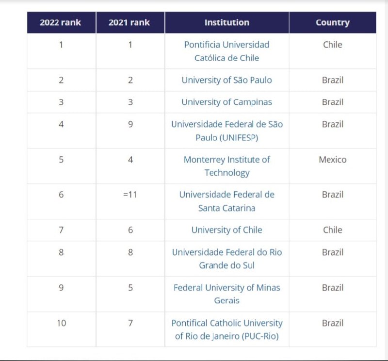📊 Опубликованы результаты регионального рейтинга университетов стран Латинской Америки 2022 года