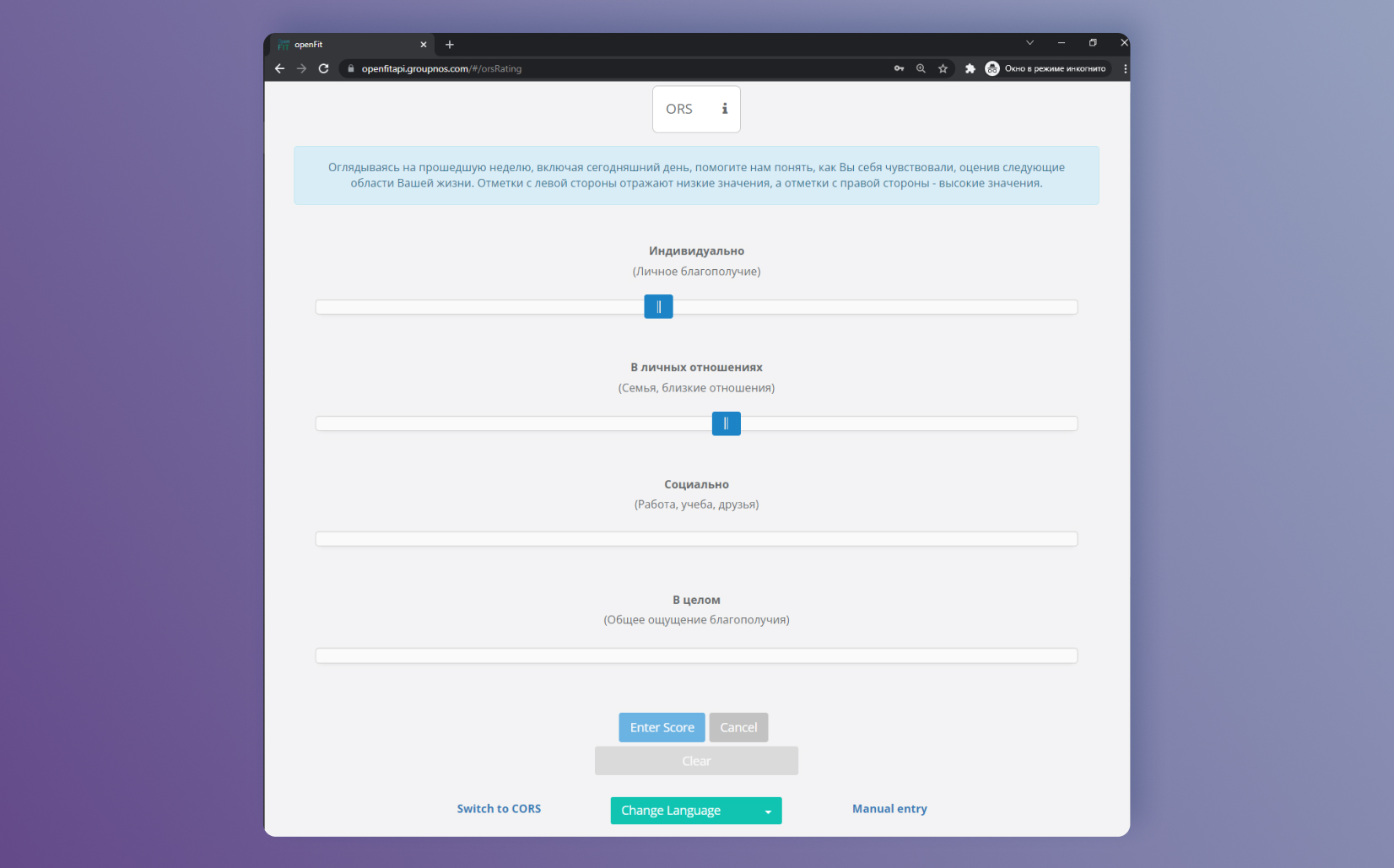 Шкала оценки результата (это та, в которой вопросы про благополучие в разных сферах жизни) нужна для того, чтобы давать понять терапевту, начинает ли человек после нескольких встреч в целом чувствовать себя лучше. Это важно, потому что в большинстве случаев улучшения начинаются после первых нескольких встреч, а если этого не происходит — это повод поговорить с клиентом и начать делать что-то по-другому.