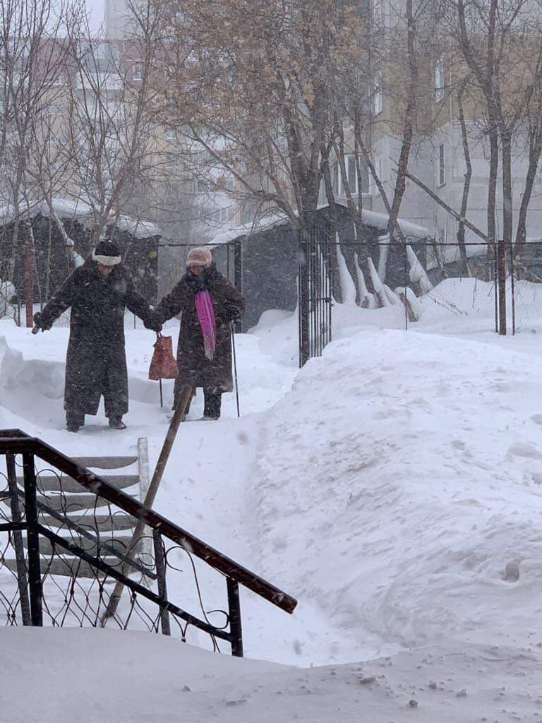 На фотографии, которую мне прислали из занесенного снегом Новосибирска, видно, как бабушки, поддерживая друг друга, идут по сугробам в социальную столовую. Мне кажется, что это может быть символом работы «Каритас», да и всей благотворительности вообще – сугробы все выше, а люди все пробираются и пробираются через них.