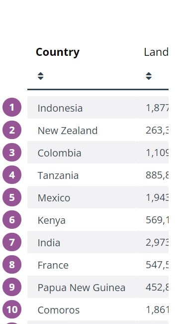 В Индонезии расположено более 17 тыс. островов, и в том числе, знаменитый остров Бали. Новая Зеландия — это луга, горы и живописное побережье Тихого океана. Колумбия может похвастаться побережьем Карибского моря, горами и тропическими лесами.