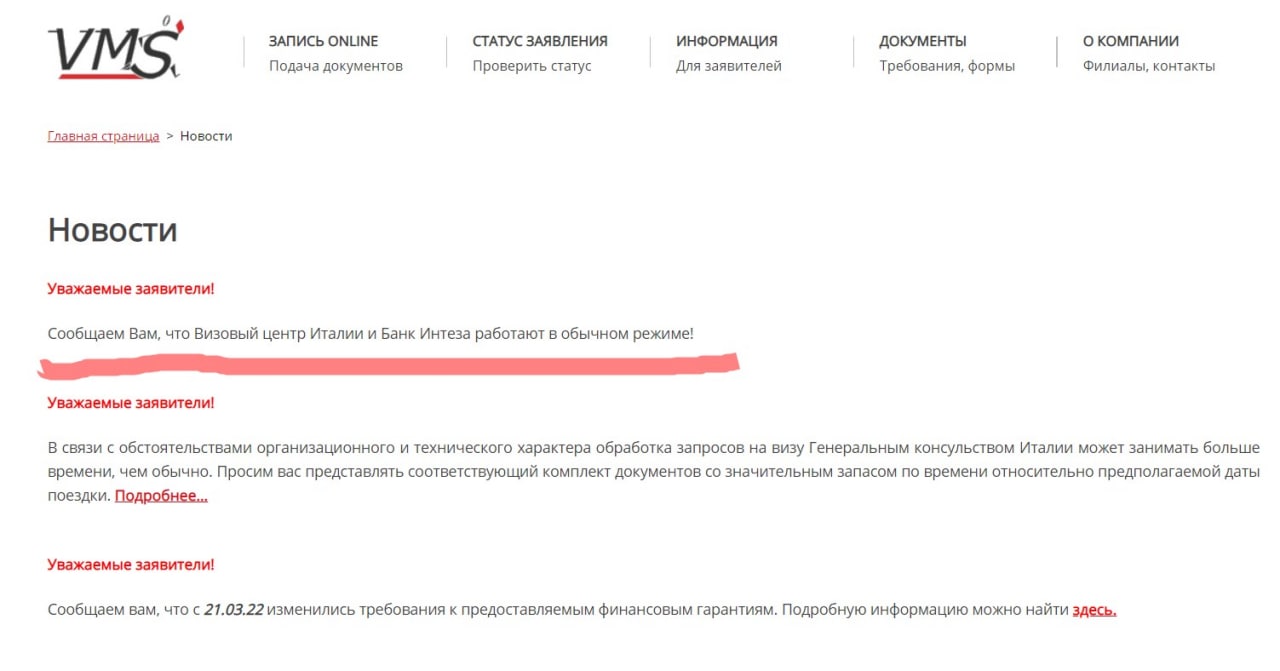 Визовый центр Италии объявил о том, что все проблемы с приёмом оплаты решены, работа осуществляется в обычном режиме.