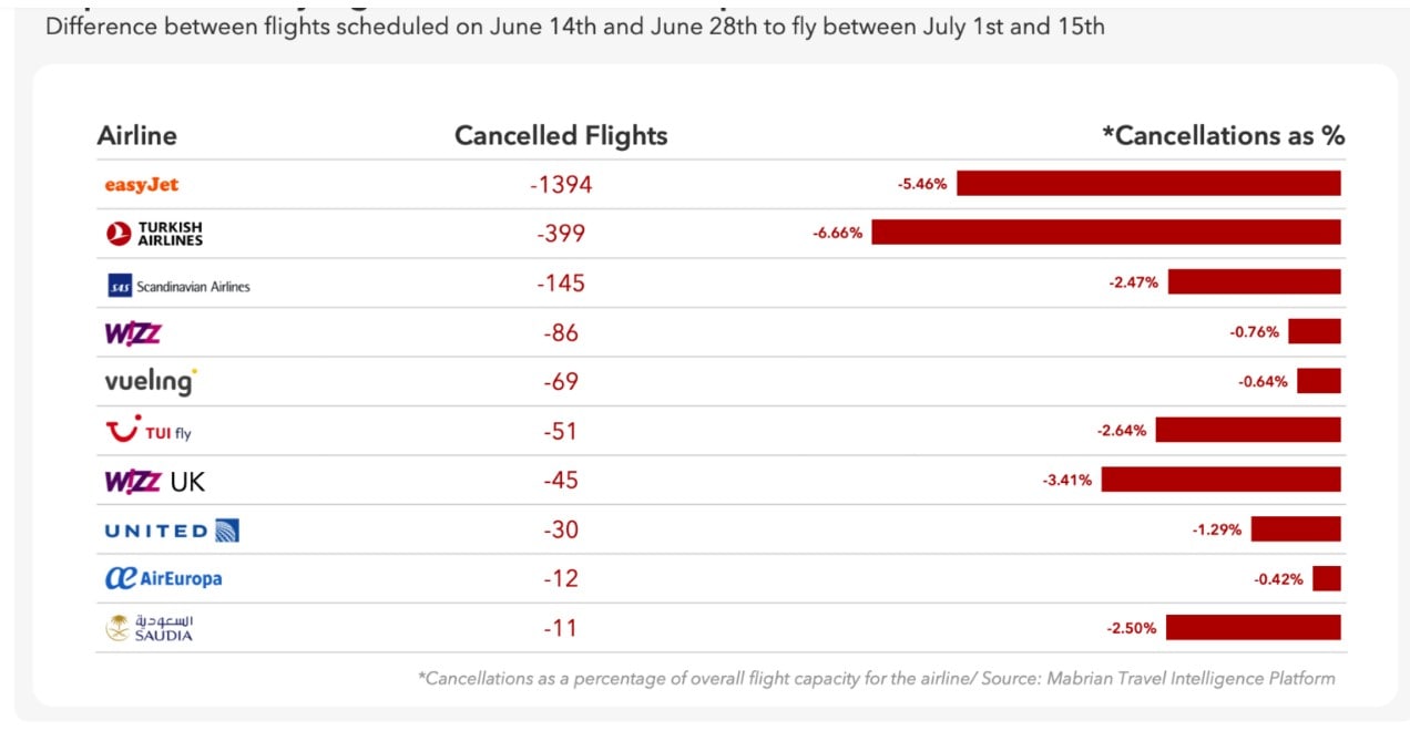 Статистика отмены рейсов с 1 по 15 июля от компании Mabrian пригодится при выборе авиакомпании.