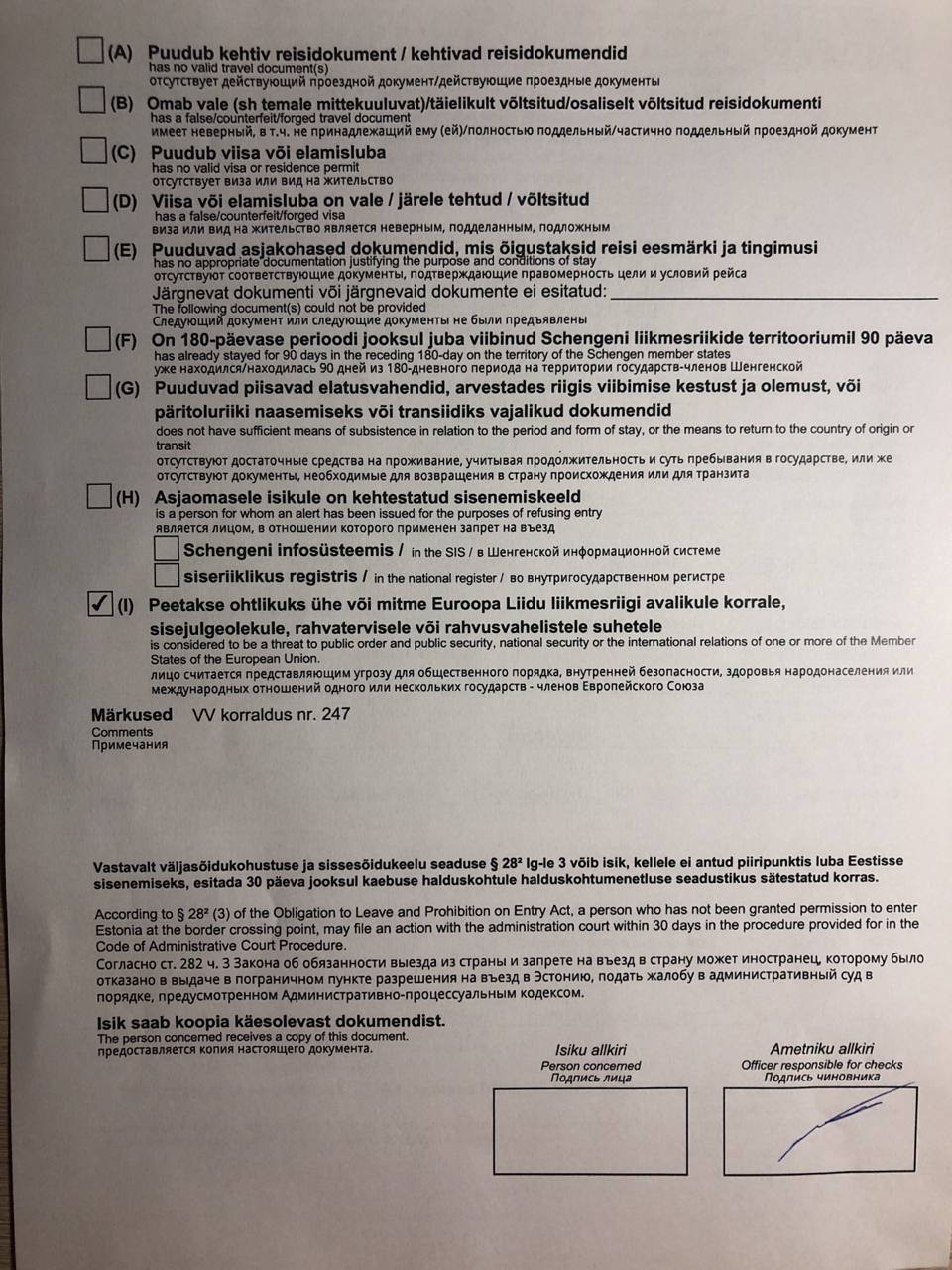 Подписчица Эмигрицепса Надежда сообщает, что её не пустили к сыну, который живет в Эстонии 7 лет, хотя предыдущие поездки в сентябре и августе прошли нормально.