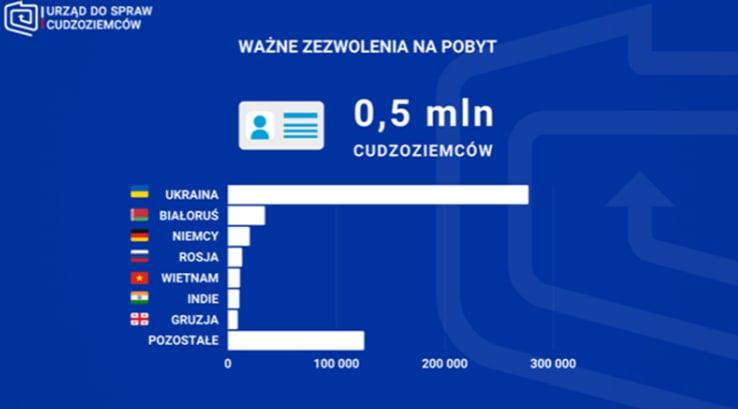 🇵🇱 В Польше 500 тысяч иностранцев имеют вид на жительство. Более половины из них — граждане Украины. Быстрыми темпами растет и количество белорусов в Польше, сообщает радио Голос Балтии.