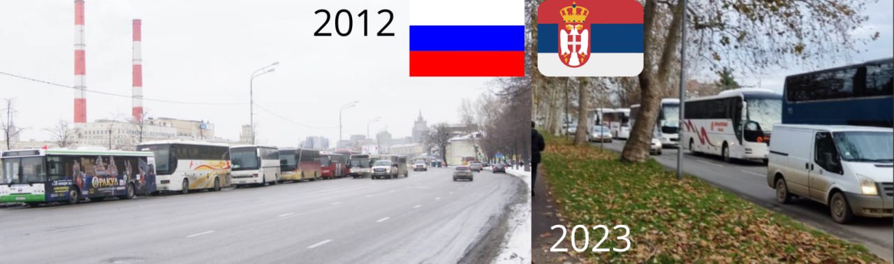 У многих эмигрантов, переезжающих в Сербию, возникает главный вопрос: "А не случится тут Россия?". Мне вот, кстати, тоже любопытно. 😅 Шел по Нови-Саду и вижу картину: куча автобусов с табличками - по названиям видно, что привезли народ из небольших сербских городков.