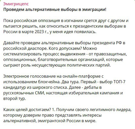 Ну вот, блогер и юрист Марк Фейгин взял на вооружение идею Эмигрицепса провести выборы онлайн. По версии политика, для голосования в сети российские избиратели будут регистрироваться при помощи загранпаспортов с биометрическими чипами. Помогут выборам блокчейн-технологии. Процедура пройдет 17 марта, а регистрация начнется 17 января.