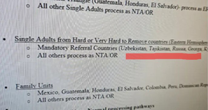 Издание New York Post опубликовало служебную записку, согласно которой пограничники из Сан-Диего будут немедленно депортировать совершеннолетних нелегальных мигрантов из 6 стран: России, Узбекистана, Таджикистана, Грузии, Молдовы, Кыргызстана. Такая политика будет применяться только к ним, гражданам остальных стран, а их в списке более сотни, дадут шанс.